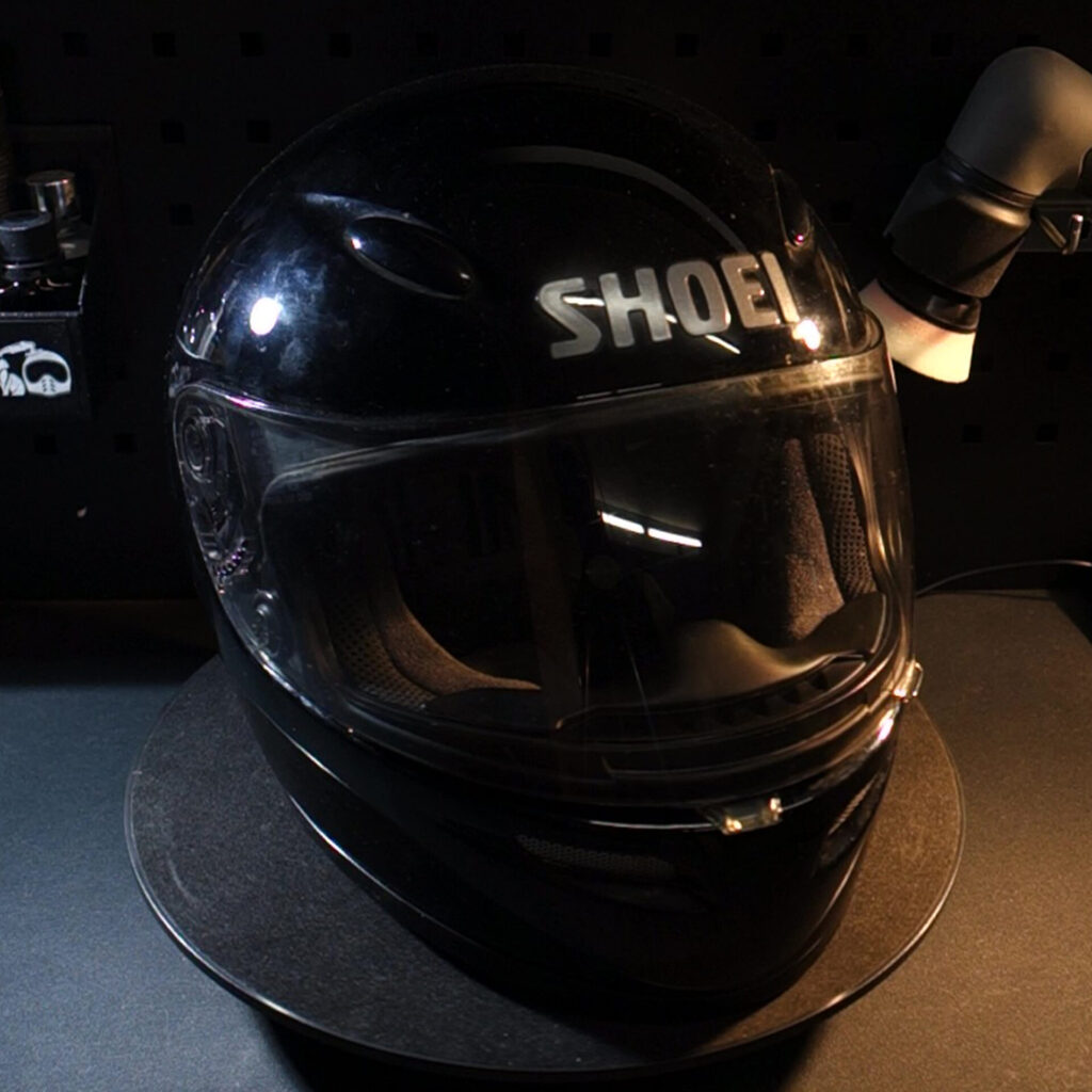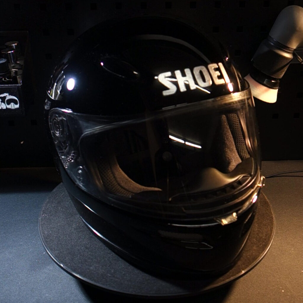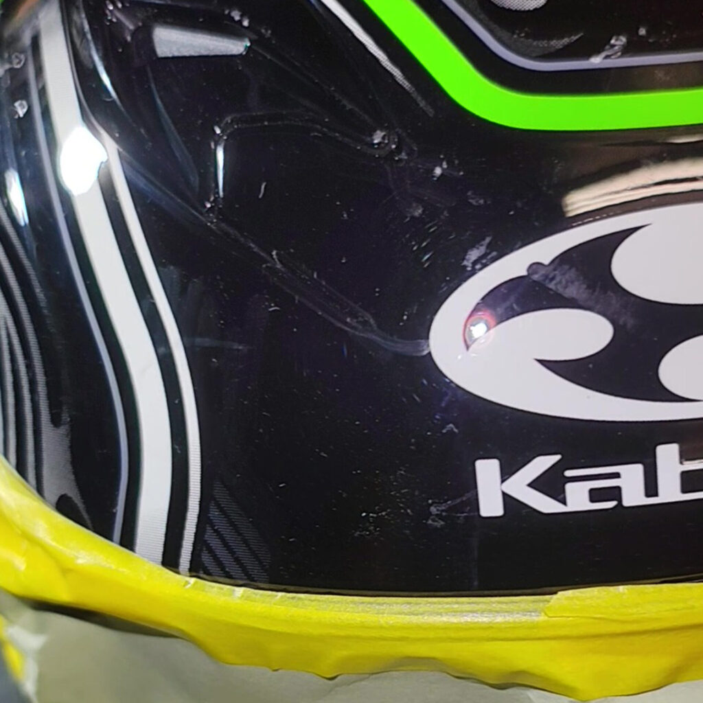 ヘルメット全体汚れがあり洗浄後に研磨、研磨は初期、中間、仕上げの3工程で対応。