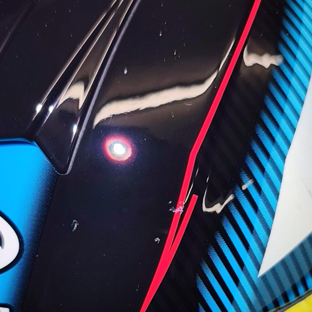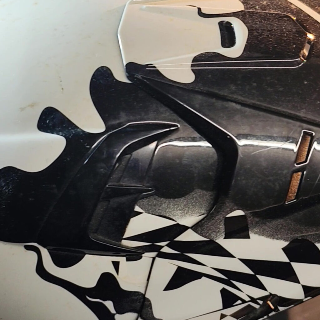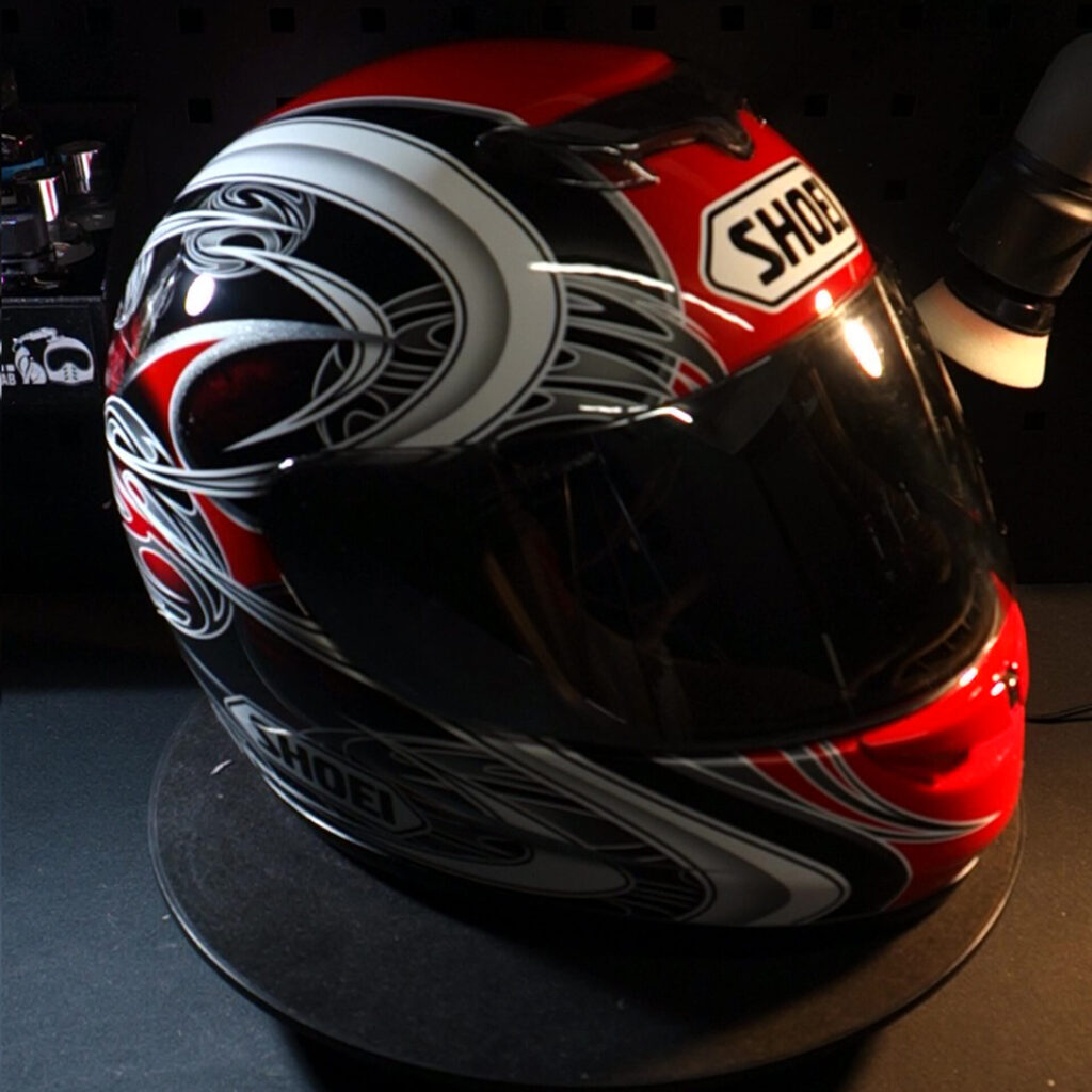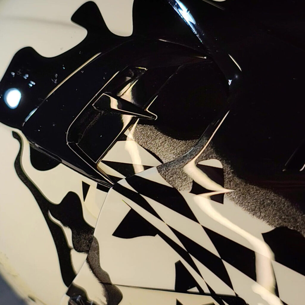 ヘルメット全体汚れがあり洗浄後に研磨、研磨は初期、中間、仕上げの3工程で対応。
